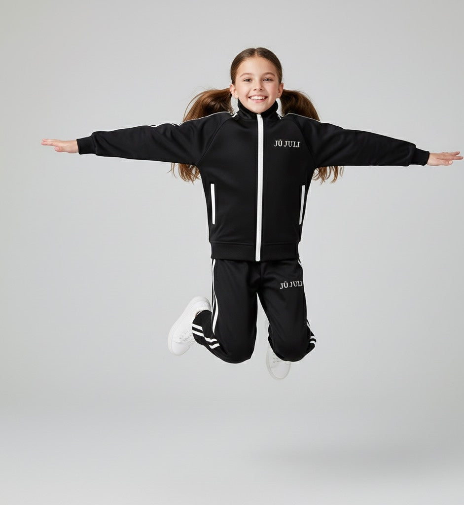 Featuring the signature Jū Juli chest and thigh detailing, contrast stripe piping, and a modern athletic fit, this set brings the same premium street-sportswear energy as the adult collection, just sized for the next generation.