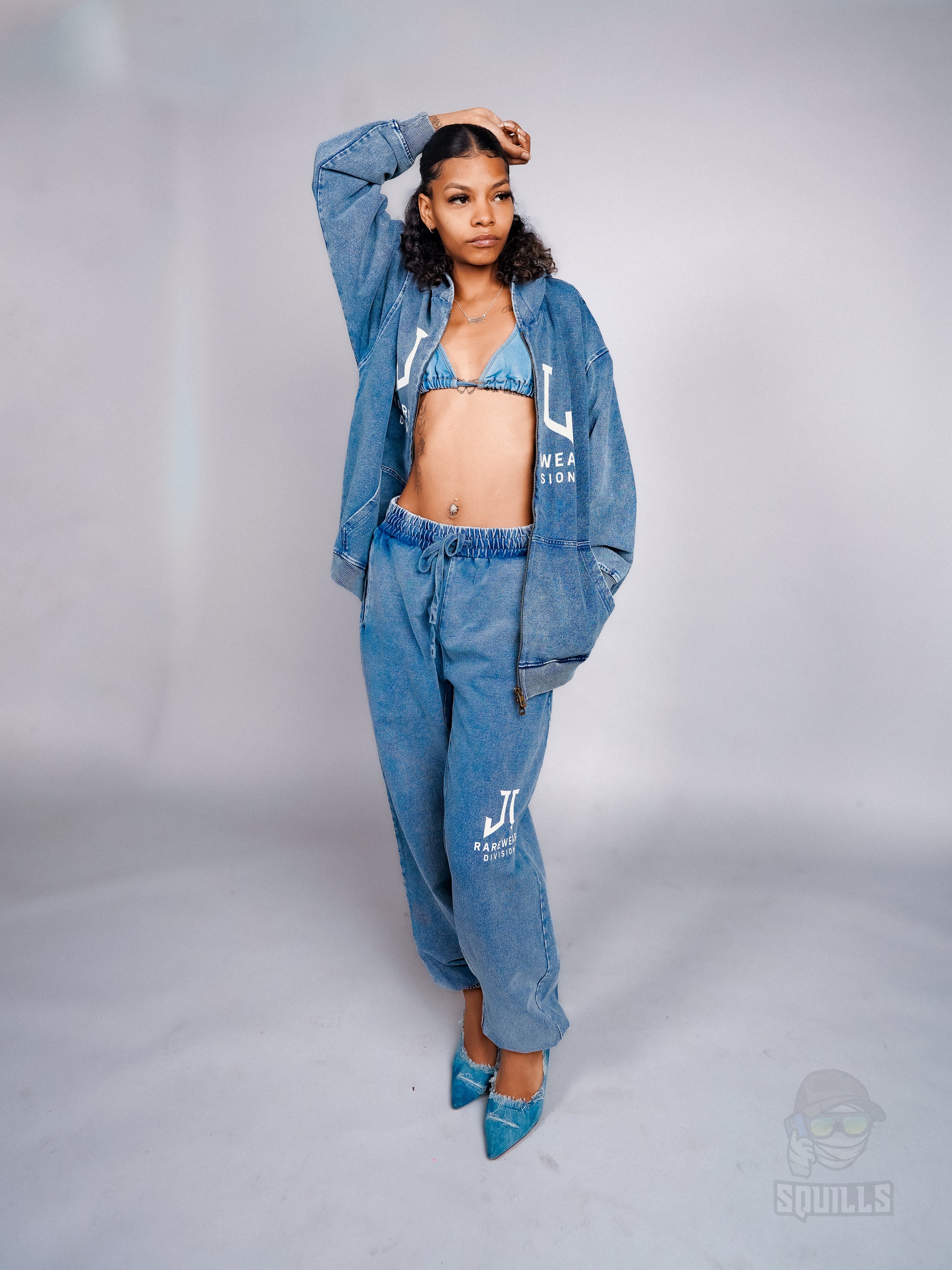The oversized hoodie features a full front zip and the Rarewear Division emblem for quiet statement energy, while the jogged pants keep the silhouette relaxed and structured.